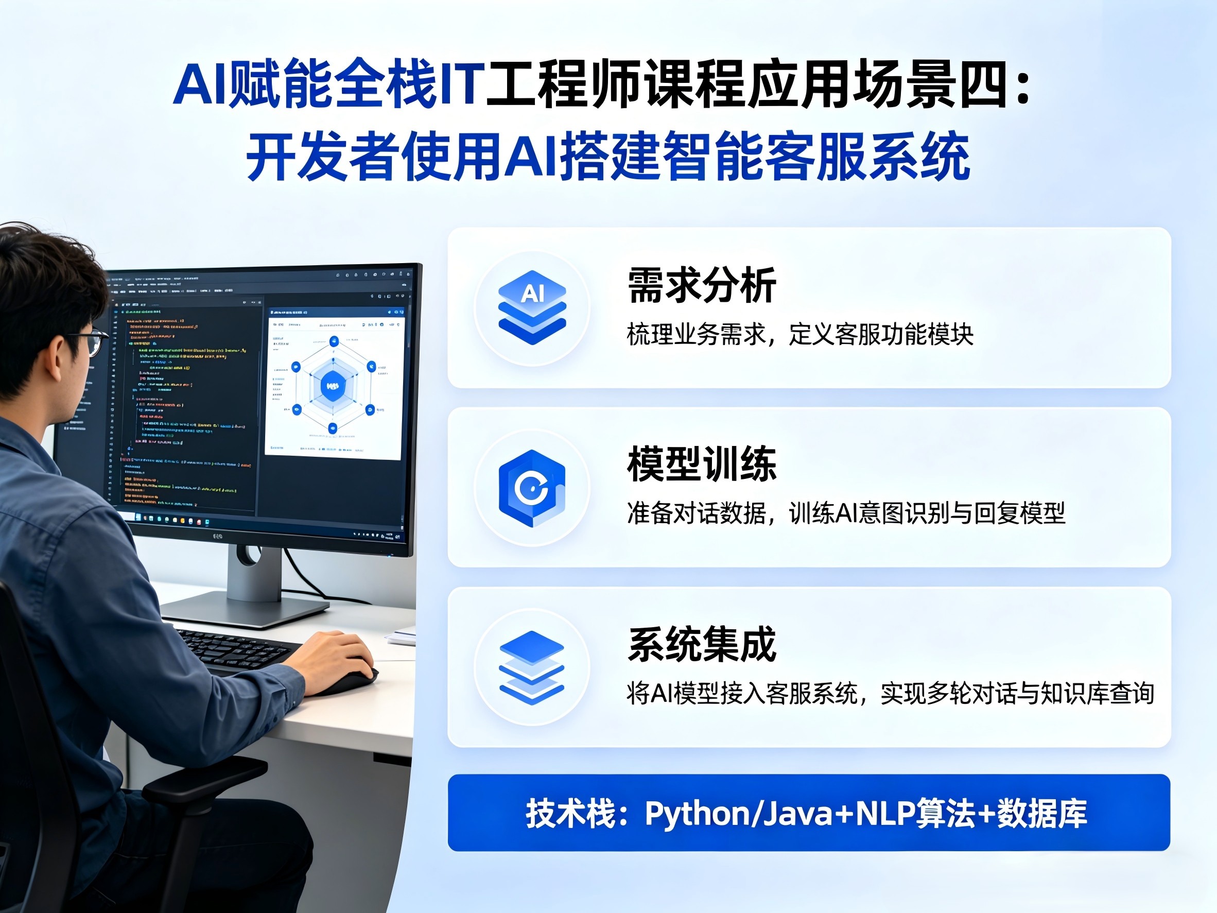 AI 时代,技术迭代加速,单一技能终将被淘汰,复合能力才是核心竞争力。选择 AI 赋能全栈 IT 工程师课程,不是学习一门技术,而是抢占未来十年的高薪赛道与职业先机。无需基础、不限专业、全程实战、就业保障,6-8 个月系统学习,从技术小白蜕变成为企业疯抢的 AI 全栈精英,开启年薪 30 万 + 的职业新征程!
